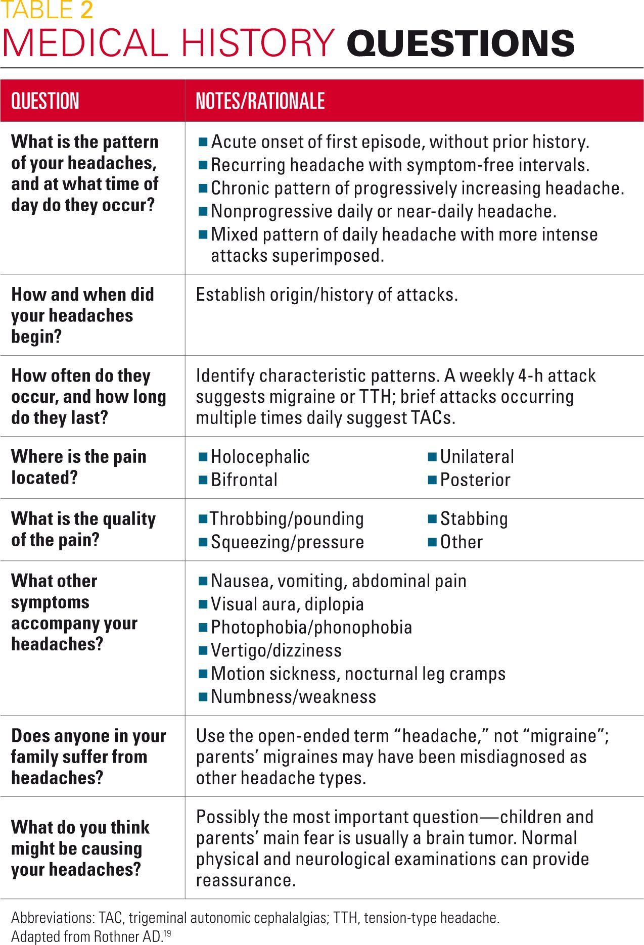 Keeping a headache diary may help you learn more about your childs situation. List all other foods eaten within 6-12 hours prior to headache onset 1. Children and adolescents ages 3-21 years whose chief complaint is headache.